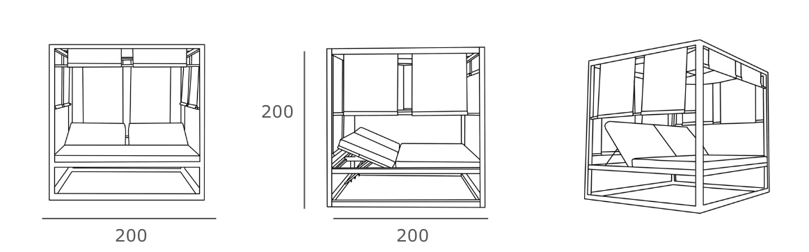 Cojinería: Loneta especial para exterior, marca Sunproof o Sunbrella, desenfundable.